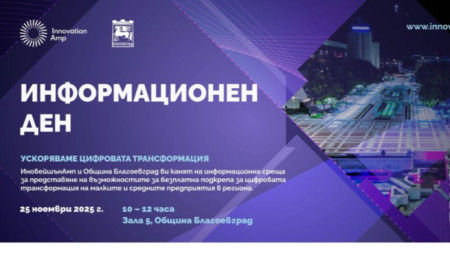 Община Благоевград ще бъде домакин на информационна среща, свързана с възможностите за безплатна подкрепа за цифровата трансформация на малките и средните предприятия. Събитието ще се проведе на 25 ноември (вторник) от 10:00 часа в Зала 5 в сградата на общинска администрация. Участниците ще могат да получат информация за различни услуги, сред..