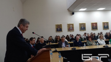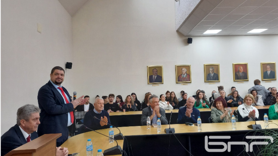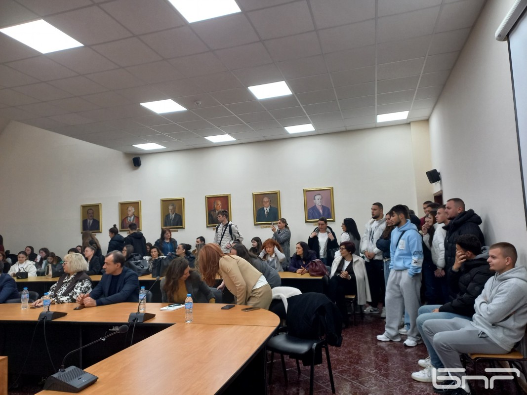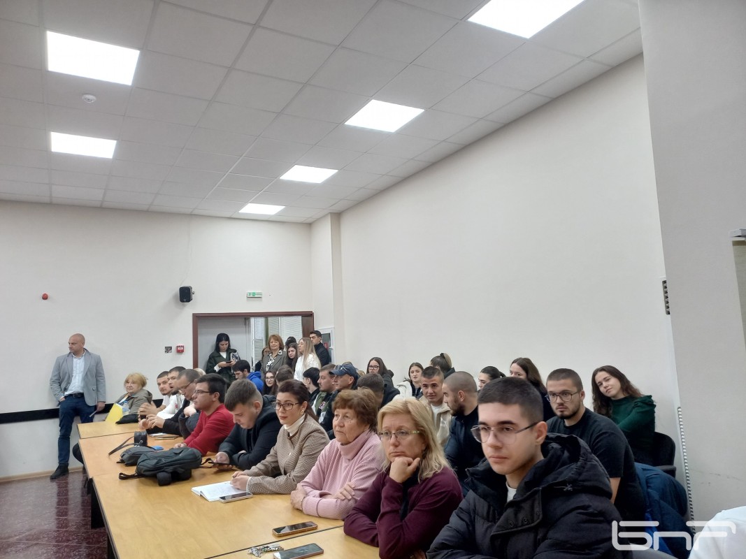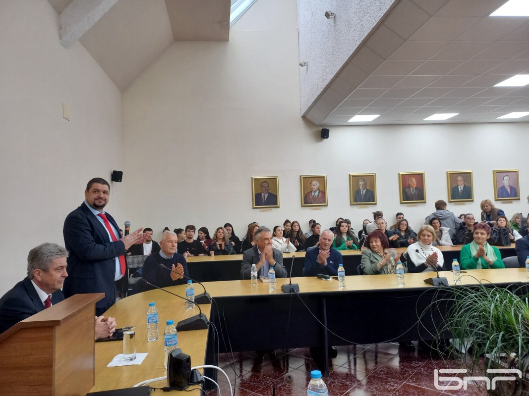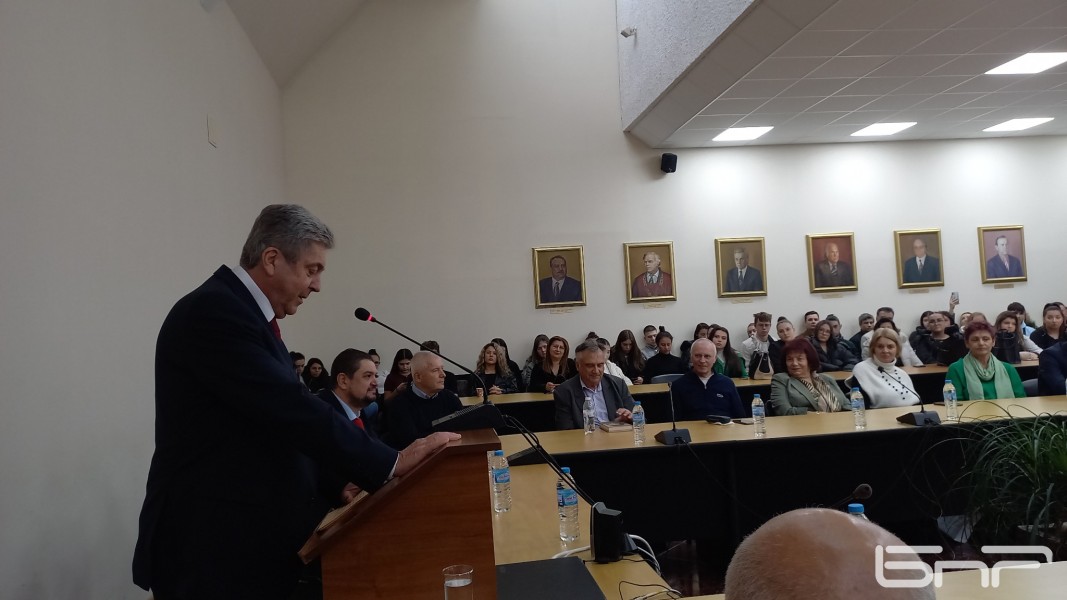 Зала 114 на ЮЗУ "Неофит Рилски" се оказа тясна да събере всички желаещи да чуят публичната лекция на тема „Лидери направиха България велика в миналото. А, сега…“. Гост-лектор беше държавният глава на Република България в периода 2002 – 2012 г. Георги Първанов.