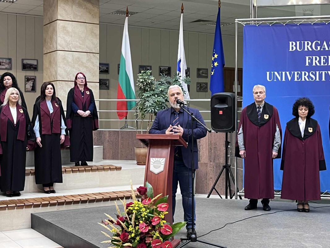 Ресорният заместник кмет на Община Бургас Михаил Ненов посочи, че БСУ създава успешни предприемачи и работодатели, които чрез своите нови идеи ще подпомагат развитието на общината и страната, както ще правят живота ни много по-добър. Той подчерта, че се увеличава и тази година броят на първокурсниците.