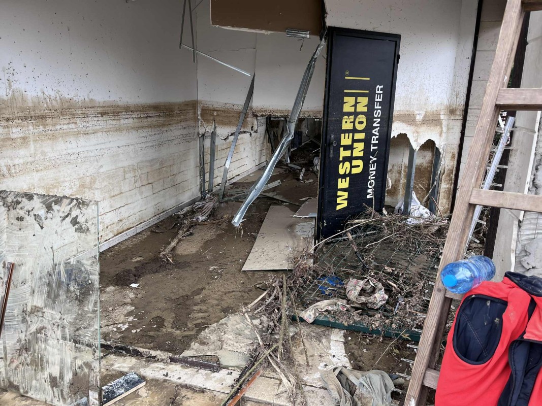 „Налага се да затворим с плоскости по някакъв начин магазина за хранителни стоки, който виждате, че няма нищо в него, водата е отнесла всичко, хладилниците са унищожени, електрическите инсталации също. След това ще изчакаме да изсъхне всичко и ще започнем разчистването. После ще започне всичко наново.“