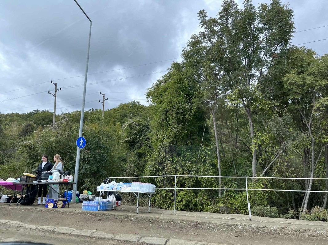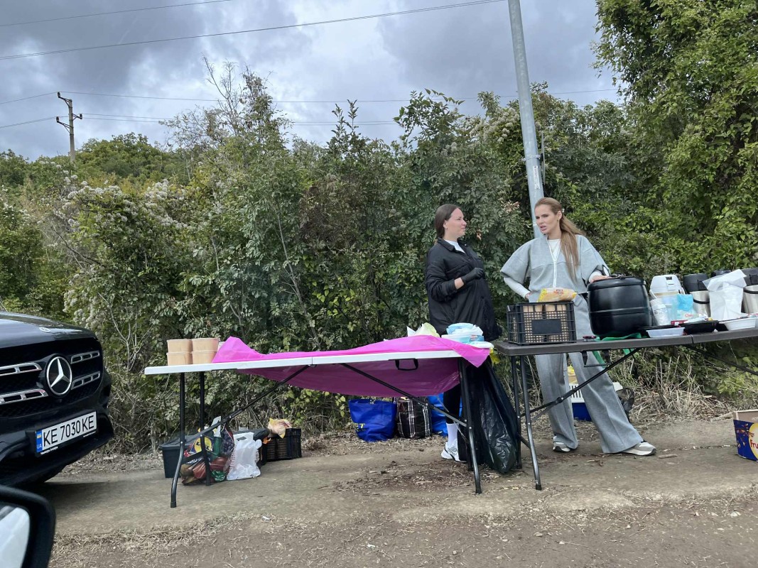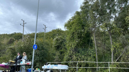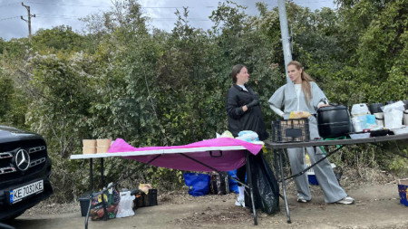 Освен вода и храна, която се предоставя безвъзмездно от собственици на ресторант на пожарникари, полицаи и доброволци, има и пункт за топла храна, който е по инициатива на доброволци от Украйна.