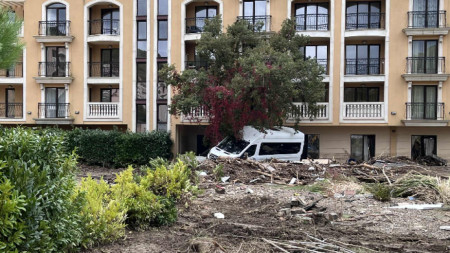 „Избягах от войната в Украйна тук. Вече са 3 години и половина. Възползвахме се от програмата, която ни беше предоставена. Преди месец успяхме да си закупим и една от вилите в този комплекс. Сега нямаме нищо, а сме и с две малки деца. Едното е на 5 и половина години, а по-голямата е на 6 и половина години. Тук няма как да се живее на този етап. Няма вода, няма ток, няма канализация. Говори се, че дори ще го съборят този комплекс. Четвърти ден вадим дрехи от наводнения ни дом, доколкото можем, защото нямаме никакви, дадоха ни назаем. Едни украинци ни предоставиха жилище за един месец, но след това не знам. Утре ще чакаме помощ от доброволци от Община Несебър. В двора има около метър кал. Двете ни коли също заминаха. Моята стигна до морето, а на жена ми е тук в отпадъците, които са се струпали. Моите комшии останаха и те без нищо, приливната вълна ги отнесе от хола с дивана, докато гледаха телевизия. Бяха по бельо. Сега търсят документи, пари, злато, нищо не могат да намерят. Всичко е в тиня.“