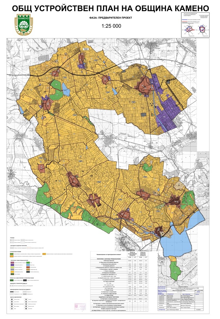 Югоизточната и източната част на Камено са предвидени за създаване на складове и производствени помещения. За там има голям интерес, отбеляза кметът. Има кандидати инвеститори. Такива зони са предвидени и в селата. Ще има и зони за застрояване. Такъв интерес има в Черни връх и Константиново.
