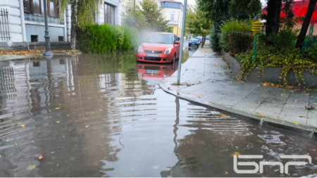 Наводнени улици в Бургас затрудняват движението, заради силния дъжд, които вали часове наред. Затруднено е преминаването в района на кръговото на Трапезица..