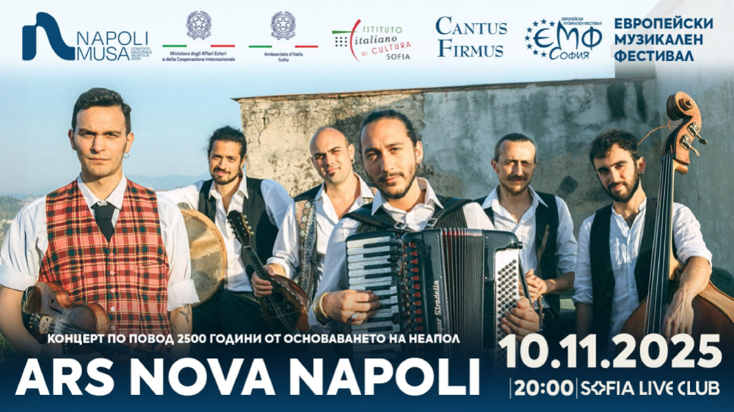 Das Europäische Musikfestival bietet den Musikliebhabern Sofias am 10. November ein aufregendes Erlebnis. Das 2500-jährige Bestehen der legendären italienischen Stadt Neapel werden mit einem besonderen Ereignis gefeiert - einem Konzert der Formation Ars Nova Napoli, einer der bekanntesten und geschätzten Gruppen der neuen neapolitanischen Volksmusik. Die Virtuosen entführen das Publikum mit neuen Interpretationen von Volksliedern und Originalkompositionen, die von der mediterranen Kultur inspiriert sind, ins Herz Süditaliens. Das Programm, das um 20:00 Uhr im Sofia Live Club beginnt, ist voller Energie und Leidenschaft und lässt die reichen italienischen Musiktraditionen wieder aufleben.