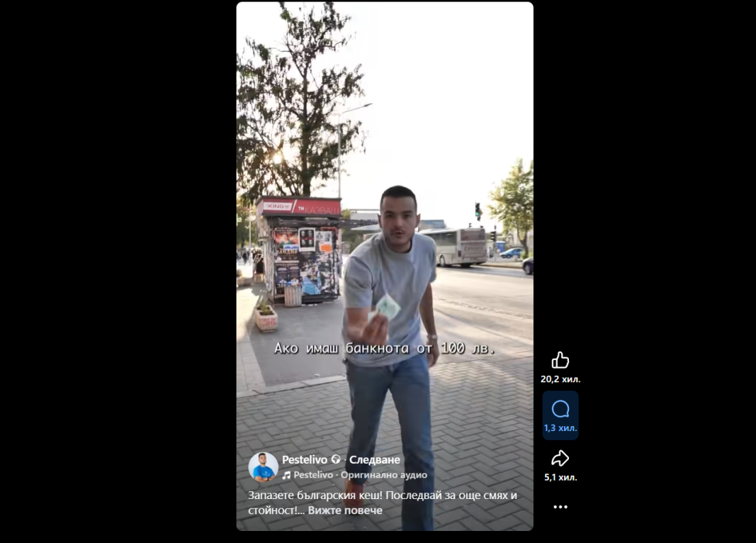 Наскоро в онлайн пространството популярност придоби видео с "финансов съвет" на тема плащане с карта/кеш. Краткото видео е публикувано на Facebook страницата Pestelivo, има 20,2 хил. харесвания, над 5 хиляди споделяния и множество одобрителни коментари.
