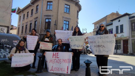Граждани на Дебелец и организацията "Кажи" протестираха пред Административния съд във Велико Търново, където днес започна делото срещу решението на Регионалната екологична инспекция (РИОСВ). С него се допуска двойното разширение на птицефермата за кокошки..