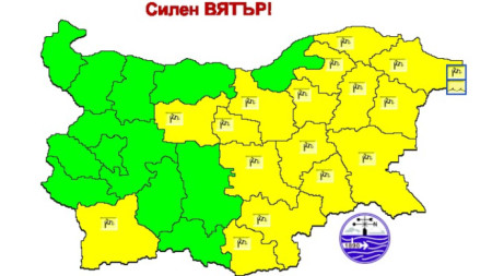 Жълт код за силен южен вятър е в сила днес за 16 области от страната, включително и по морето, сочи справка на сайта на НИМХ.