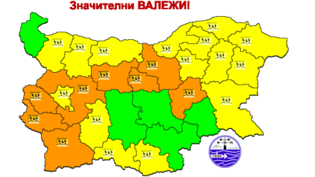 Оранжев код за обилни валежи е обявен за днес за 8 области на страната. Това са областите Кюстендил, Перник, Благоевград, Ловеч, Габрово, Велико Търново, Сливен и София-област. В сила е и жълт код за интензивни дъждове в други 15 области, показва справка на сайта на Националния институт по метеорология и хидрология.