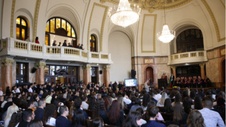 В аулата на най-старото и авторитетно висше училище у нас - Софийския университет "Св. Климент Охридски", тържествено бе открита новата 137-ма поред академична година. Гости на тържеството бяха председателят на парламента Наталия Киселова и просветният министър Красимир Вълчев, които участваха във връчването на студентските книжки на..