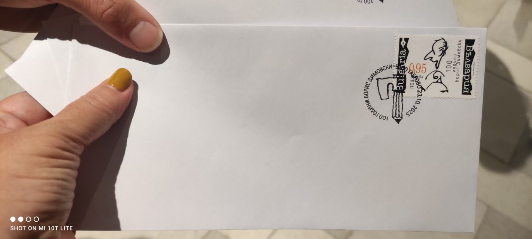 Пощенската марка с автопортрет на Борис Димовски и неговия подпис беше валидирана пред погледите на дошлите да почетат 100-годишнината на забележителния карикатурист. Изданието е с номинал 95 стотинки и тираж 5500 броя. Проектът е на доц. Стоян Дечев.