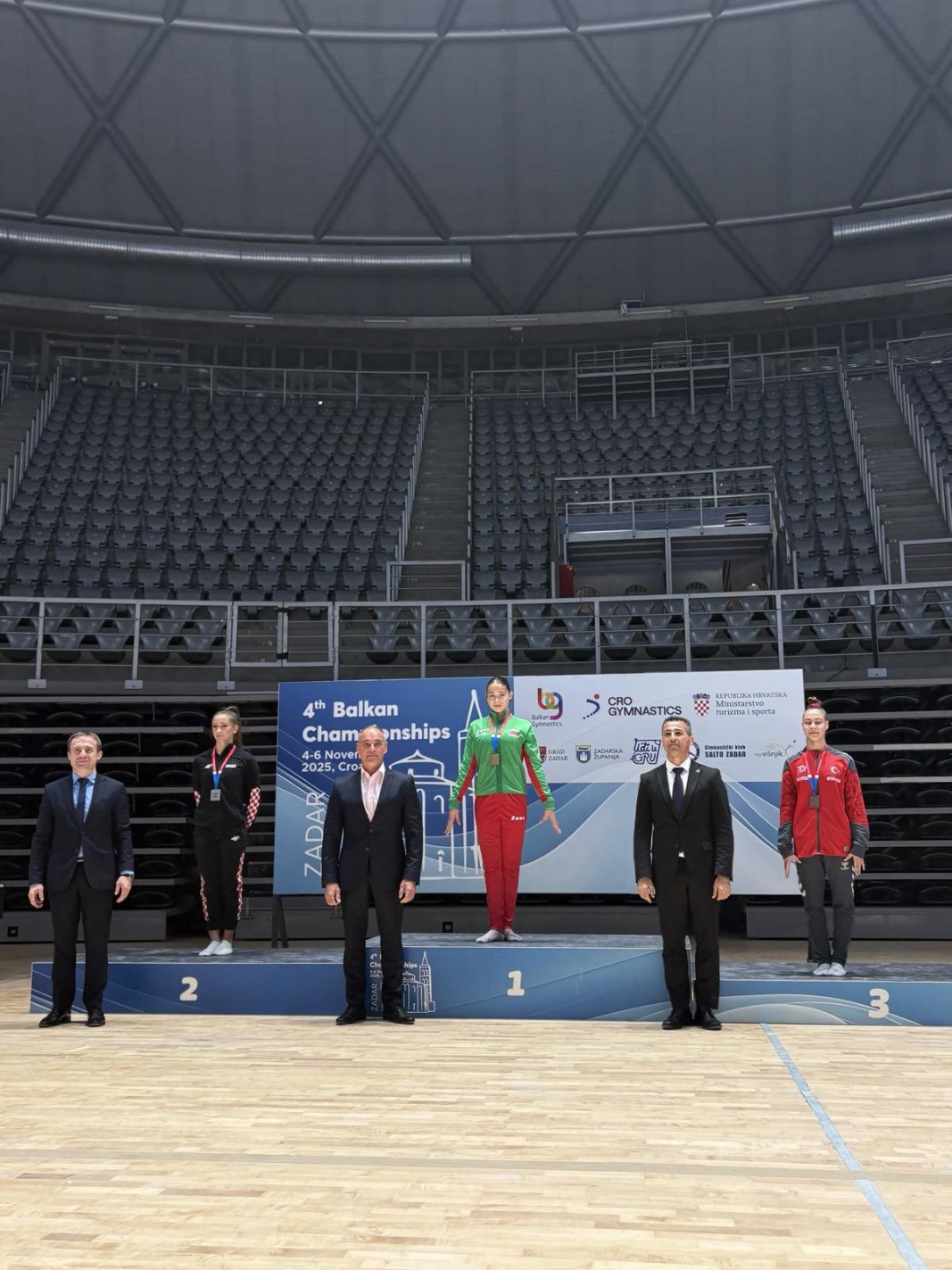 Състезателката на хасковския клуб "Юнак" беше наградена от президента на Българската федерация по гимнастика, олимпийския вицешампион на висилка от Игрите в Атланта Красимир Дунев.
