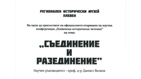 Регионалният исторически музей в Плевен е домакин на национална научна конференция "Плевенски исторически четения". Темата тази година е "Съединение и разединение", Изборът на темата е продиктуван от няколко кръгли годишнини, между които 140 години от Съединението и Сръбско- българската война, 110 години от влизането на България в Първата..