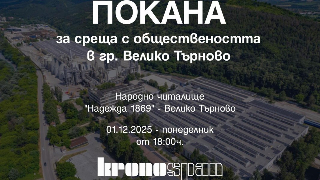 Същевременно от "Кроношпан България" поканиха великотърновци на среща на 1 декември от 18 часа в салона на читалище "Надежда".