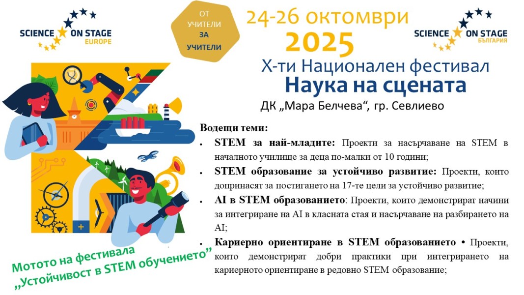 На форума ще бъдат избрани група от учители, които ще представят България на европейския фестивал "Наука на сцената", който ще се проведе през май 2026 година.