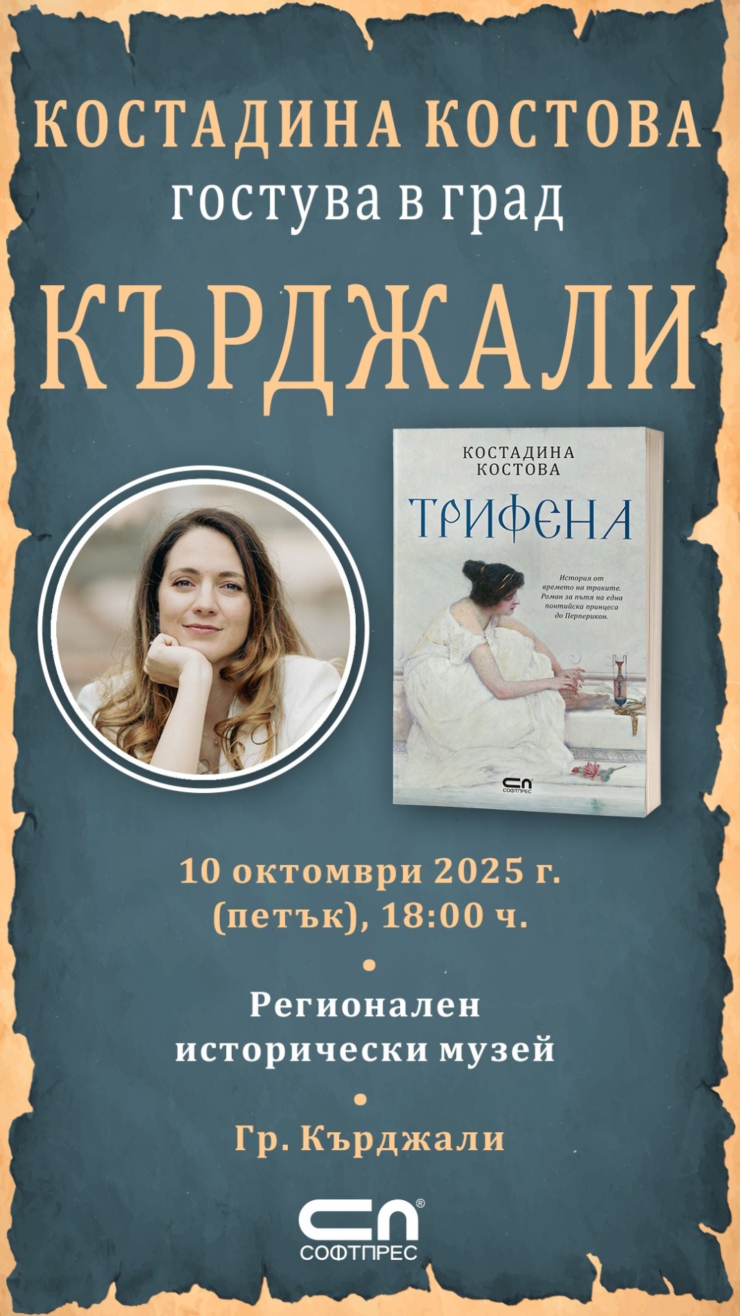 На 10 октомври (петък) от 18:00 ч. в Регионалния исторически музей ще се състои премиерата на новия роман на Костадина Костова – „Трифена“.