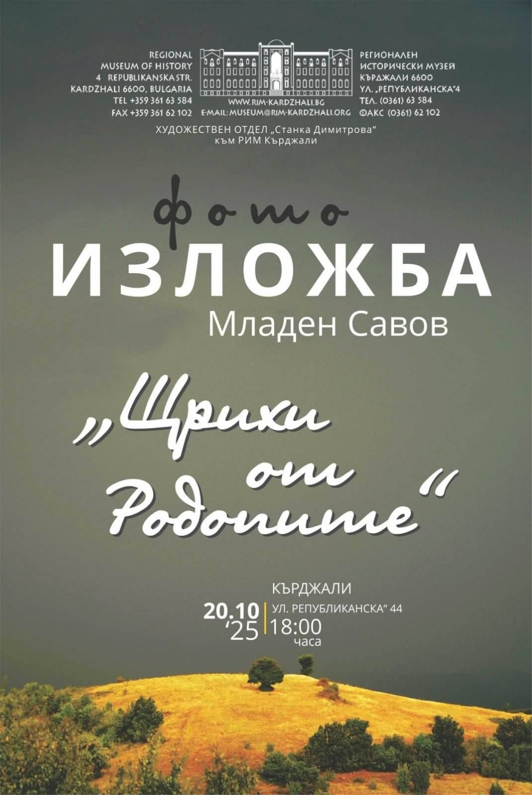Фотоизложбата „Щрихи от Родопите“ ще бъде открита на 20 октомври от 18.00 ч. в Художествената галерия „Станка Димитрова“ в Кърджали.