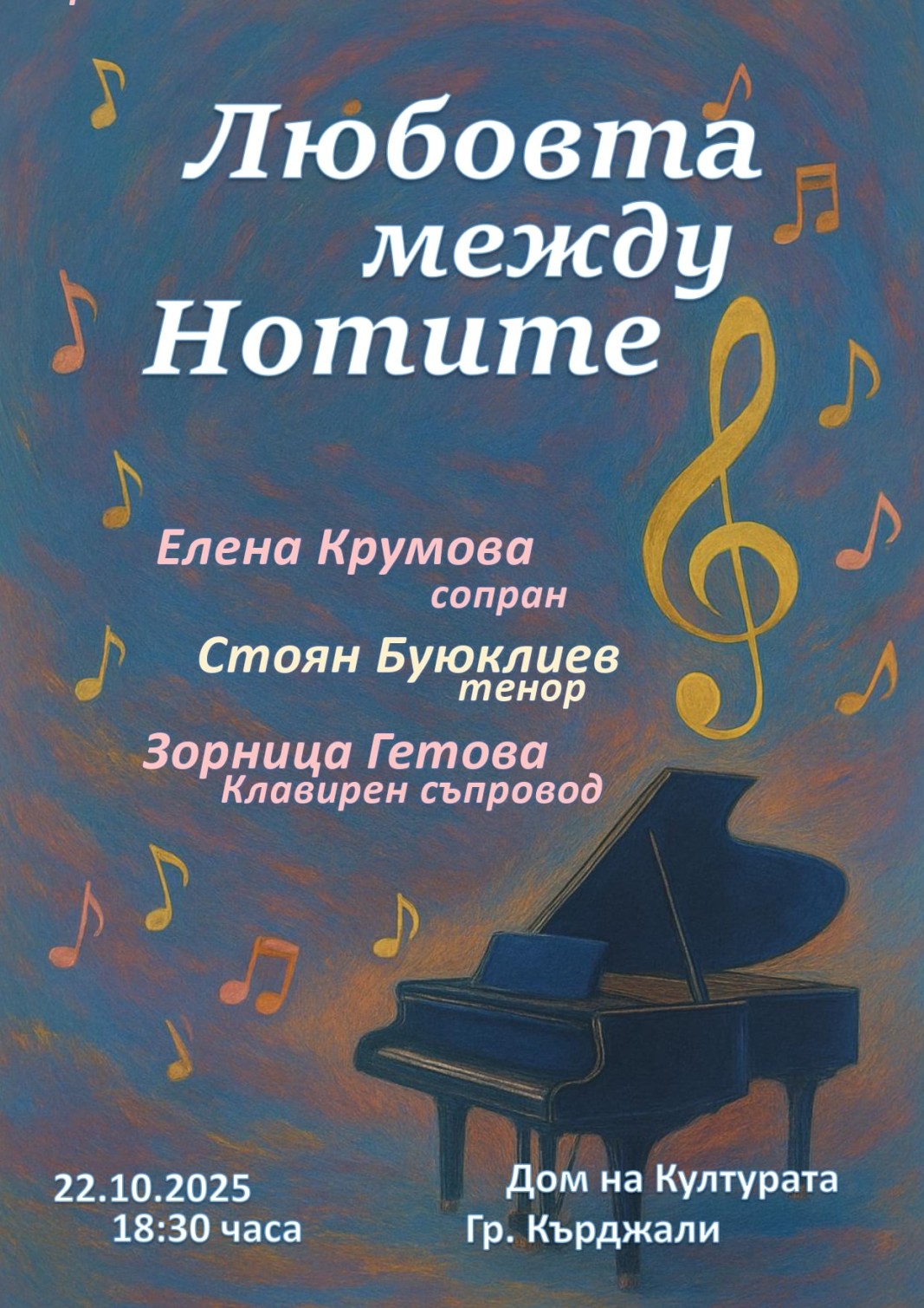 Домът на културата кани всички ценители на големия оперен и оперетен празник, какъвто е концерта с романтичното заглавие „Любовта между нотите”.