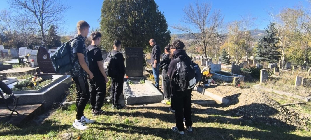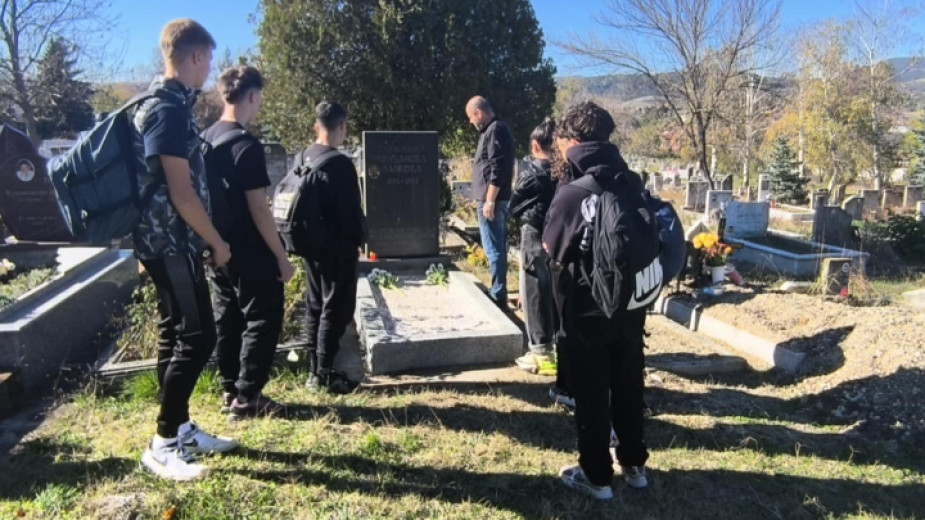 Учители и ученици от 8 и 10 клас поднесоха цветя на гроба на учителката, положила основите на просветното дело в града и в средно училище „Отец Паисий“.