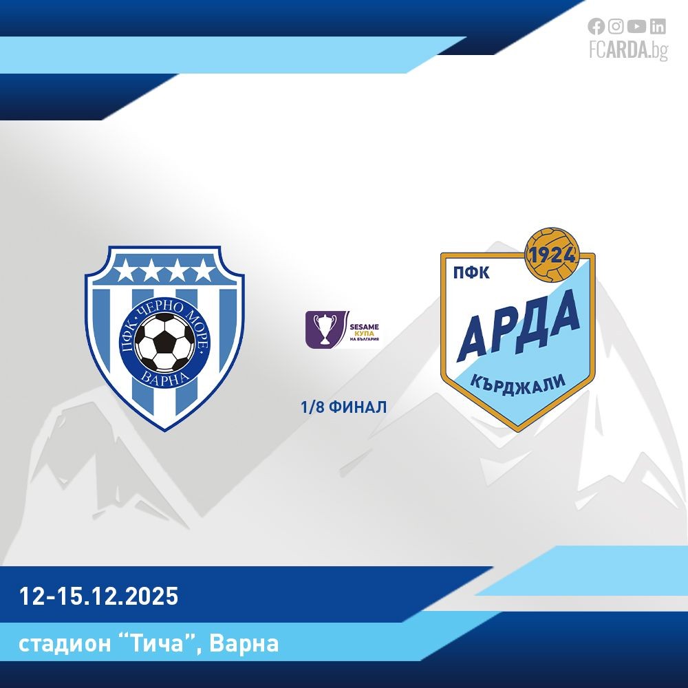 Арда излиза срещу отбора на Черно море в осминафинала в турнира за Купата на България по футбол. Това определи тегленият днес жребий.