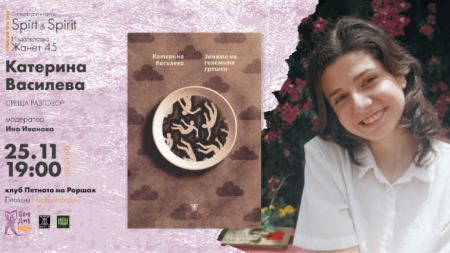 Среща разговор с младата поетеса Катерина Василева ще се състои в клуб "Петното на Роршах" от 19 часа тази вечер. Ще стане дума за силата на отделния човек, за големите несправедливости и малките ни победи, за умението ни да се отстояваме и да устояваме. Модератор на срещата е писателката Ина Иванова. Инициативата е на Литературния фестивал..