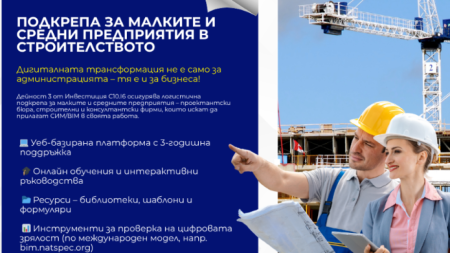 Дигиталната трансформация не е само за администрацията – тя е и за бизнеса! Дейност 3 от Инвестиция C10.I6 осигурява логистична подкрепа за малките и средните предприятия – проектантски бюра, строителни и консултантски фирми, които искат да прилагат СИМ/BIM в своята работа. Дейността включва изграждане на уеб-базирана..