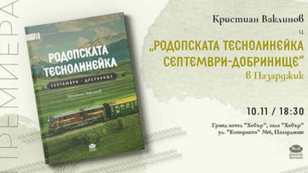 Енциклопедичната книга "Родопската теснолинейка Септември – Добринище“ на Кристиян Ваклинов ще бъде представена днес в Пазарджик. Тя излиза под редакцията на Ива Спиридонова и Симеон Аспарухов, които ще бъдат и модератори на премиерата. Събитието в Пазарджик дава началото на пътуването на книгата по маршрута на самата теснолинейка Септември –..