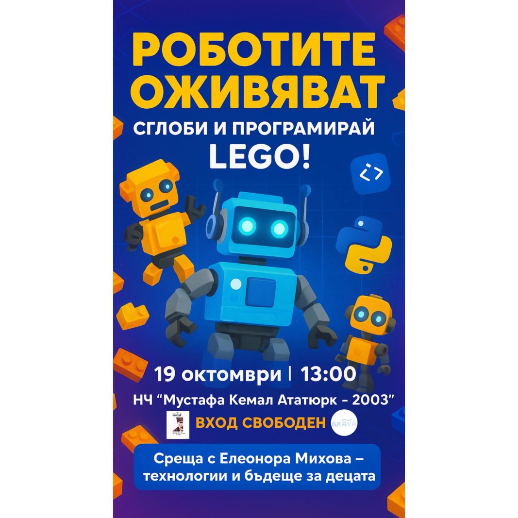 На 19 октомври /Неделя)/ настоятелството на НЧ „Мустафа Кемал Ататюрк – 2003“ в Пловдив кани всички деца да се включат в едно забавно и достъпно приключение в света на технологиите по Лего роботика.