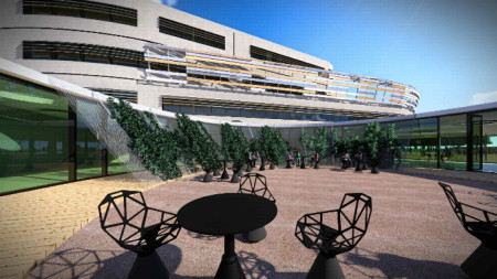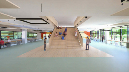 Предвижда се изграждането на голяма аула с 600 седящи места, която ще може да се използва през почивните дни и от хората в квартала. По нов начин ще бъде организирано и храненето в столовата на гимназията – там ще може да се хранят също учители и дори родители. Пространства за общуване ще има и във вътрешния, и във външния двор.