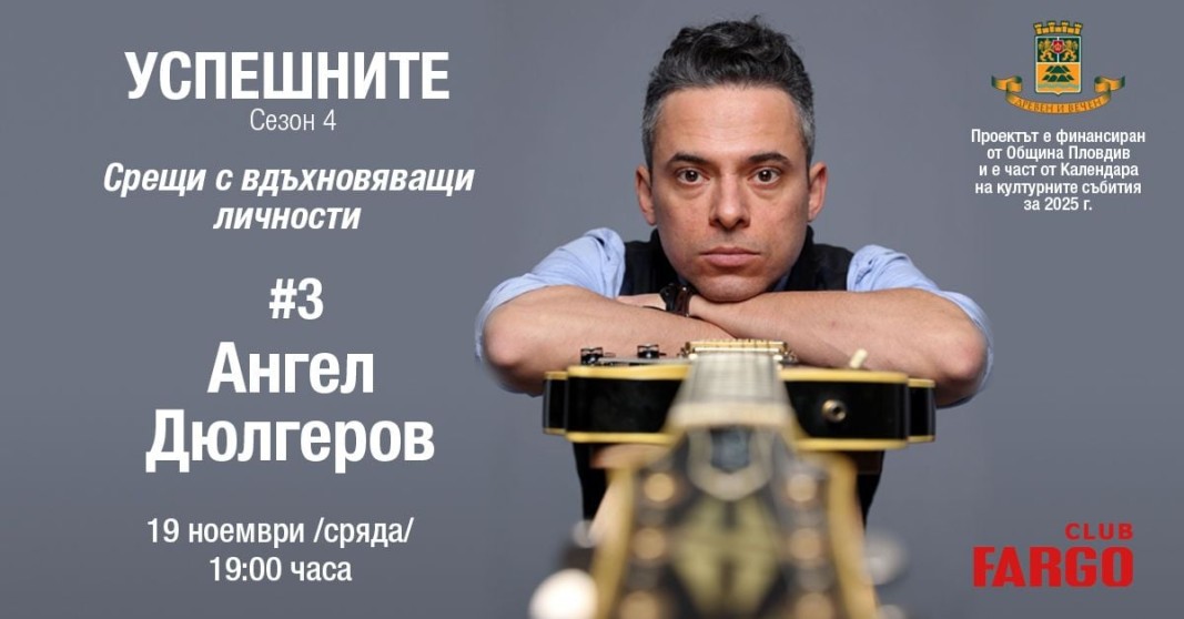 Поредицата „Успешните“ продължава със среща с известния китарист, композитор, автор на текстове, аранжор и продуцент Ангел Дюлгеров, чието име стои зад любими песни и китарни сола. Срещата е тази вечер в клуб „Фарго“ от 19 часа.