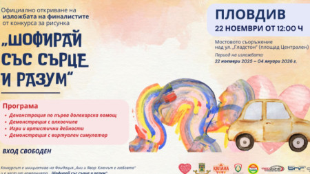 Кампанията "Шофирай със сърце и разум" гостува в Пловдив с изложба, игри и демонстрации за безопасно поведение на пътя. Събитието се организира от Фондация "Ани и Явор: Ключът е любовта".