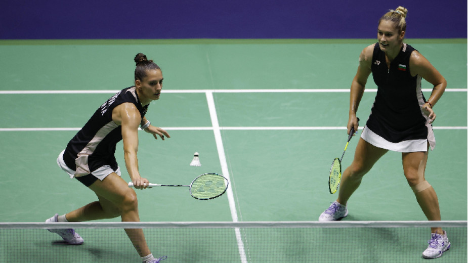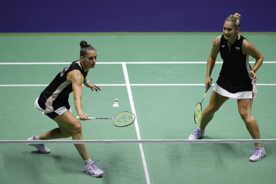 Българките, които са пети от световното първенство в Париж 2025 и европейски шампионки, победиха в първия си двубой представителките на домакините Ниведха Шринивасан и Анджу Томас с 21:10, 21:11 за 23 минути, след като доминираха през целия мач.