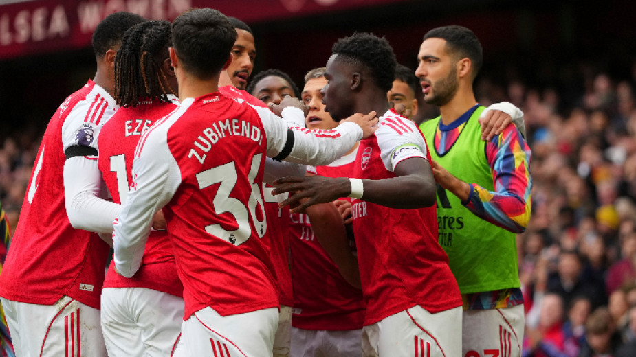 Деклан Райс откри резултата за Арсенал в 38-ата минута, а съотборникът му Букайо Сака се разписа в 67-ата минута от дузпа.