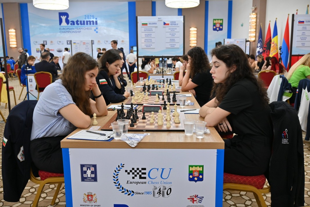 Отборът на България по шахмат при жените стартира с категорична победа участието си на европейското първенство в Батуми, Грузия.