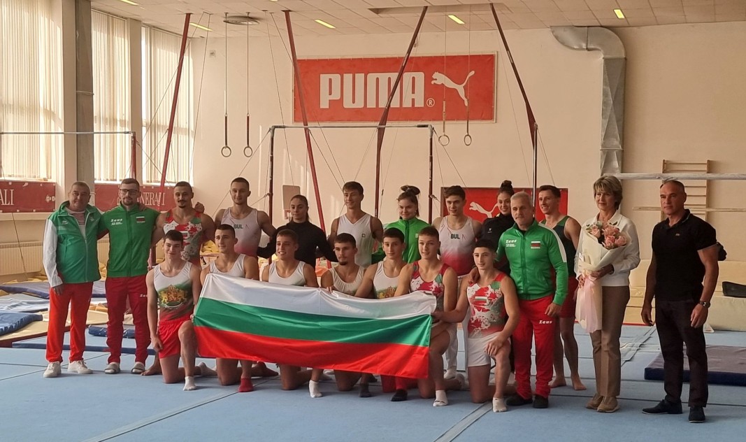 "Искам да благодаря на госпожа Лечева за подкрепата и това, че дойде да изпрати отбора за Световното първенство. Много е важно. Всяка една подкрепа от държава или от институция е много важна за нас. Понеделник заминаваме, да. Надявам се след връщането да има още повече медиен интерес към нас, след като сме направили голям успех. По трима създатели ще участват на всеки уред. Това е регламентът. Няма да има отборно класиране, но ще има класиране в многобоя и на отделните уреди. При жените Валентина няма да участва на всички уреди, защото има проблем в кръста и ще се фокусира на нейния коронен уред прескок. Първенството не е олимпийска квалификация, но това е едно от най-силните световни първенства, защото е индивидуално. Имат право да отидат шест гимнастика плюс един индивидуално гимнастик и ще имат много, много добри участници на това световно първенство. Конкуренцията ще бъде убийствена. Нашите цели са финал. Финал, ако има медал, това ще бъде наистина голям успех, но целите ни са Валентина да влезе на финал на прескок и, евентуално на земна гимнастика, Еди и Кевин Пеневи, Димитров на прескок, Даниел Трифонов също на прескок, Давид Иванов има много силно съчетание на кон с гривни, но да му се получат нещата да го изиграе. Той има също голям шанс за финал", сподели Красимир Дунев - президент на БФ Гимнастика.