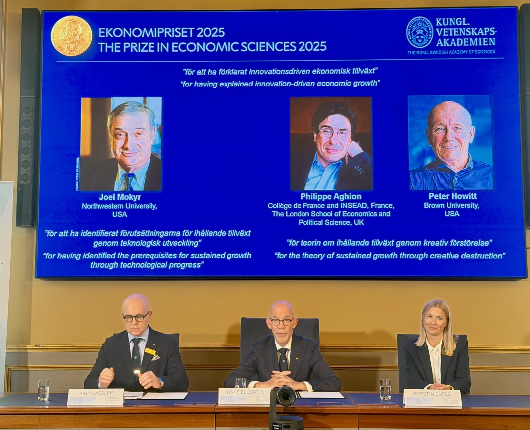 Американецът Джоел Мокир от Северозападния университет в Евънстън, САЩ, е отличен "за определянето на предпоставките за устойчив растеж чрез технологичен напредък".