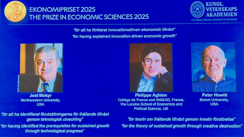 Трима души спечелиха Нобеловата награда за икономика за 2025 г.