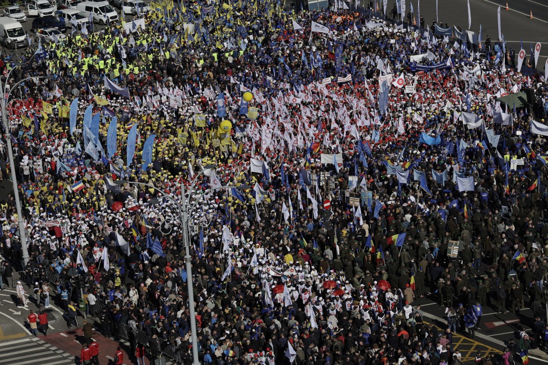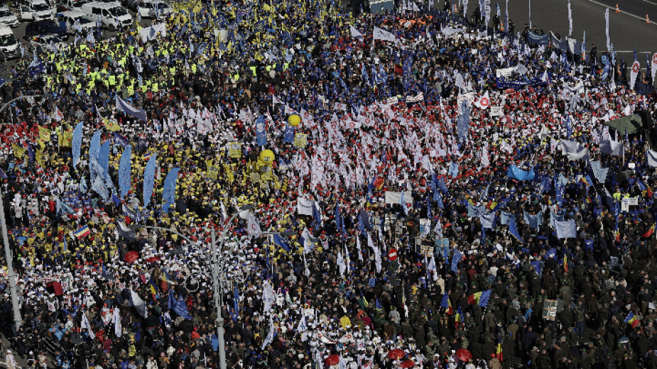 Със скандирания "Румъния, събуди се", "Оставка" и "Крадци" хиляди протестиращи от четири от големите синдикати в страната изразиха своето недоволство на площад "Викторией".