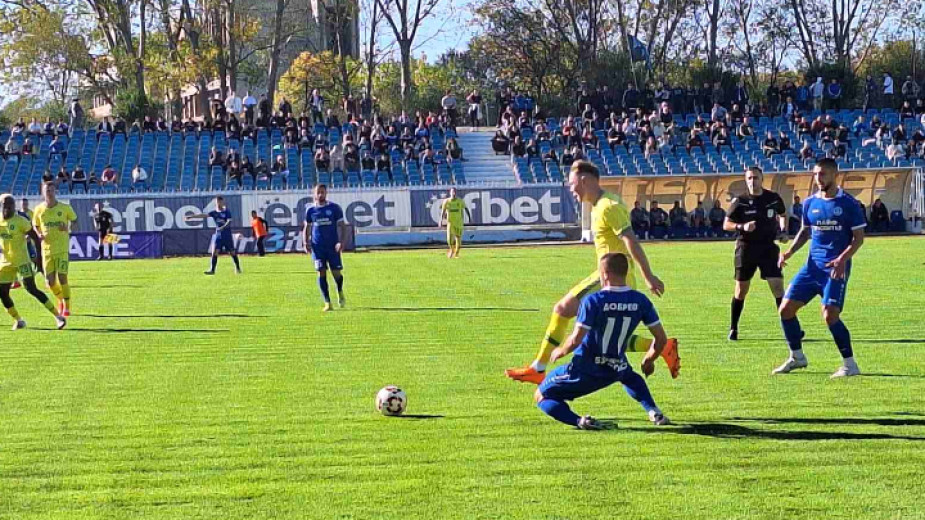 Домакините влязоха по-добре в мача и успяха да се възползват от мудното начало на гостите. В осмата минута след хубава комбинация Георги Стайков се оказа на стрелкова позиция и успя да преодолее Дамян Христов с шут с левия крак.