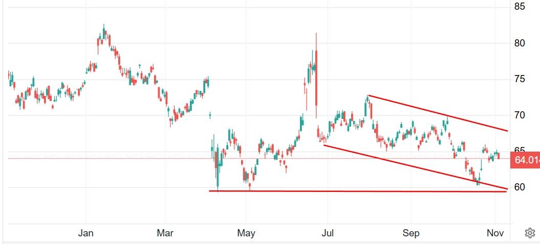 Към 11.30 часа българско време фючърсите на петрол Брент се понижават с 1,4% към 64,00 долара за барел, а тези на американския лек суров петрол WTI - с 1,55% към 60,00 долара за барел, заличавайки част от поскъпването на петрола през предходните четири дни на търговия.