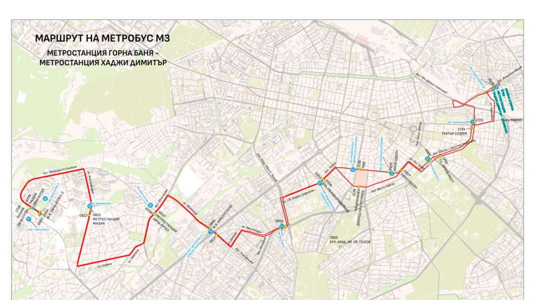 Той спира временни автобусните спирки, които се намират в непосредствена близост до входовете на метростанциите по Линия 3 като двете крайни спирки са до метространциите "Хаджи Димитър" и "Горна баня".