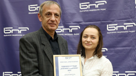 Дарина Маринова, водещ на предаването "Артефир" и отговорен редактор на редакция "Култура", получи наградата в категория "Журналистика".