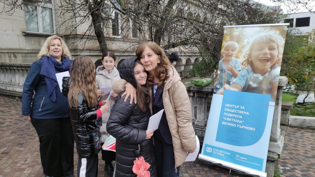 Във Велико Търново деца, психолози и социални работници раздаваха на минувачите флаери с послания срещу насилието над деца.