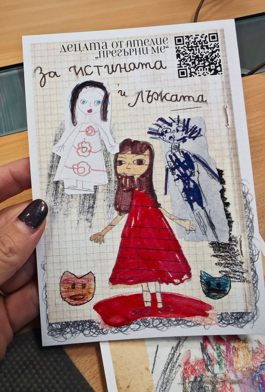 От всички разговори с децата, които траят часове и се записват, след това са извадени бисерчетата и заедно с рисунките им по различните теми стават на картички, оформени от Ясен Григоров. Чрез QR код върху тях гласовете им могат да се чуят, а също да се проследят и в ютюб.