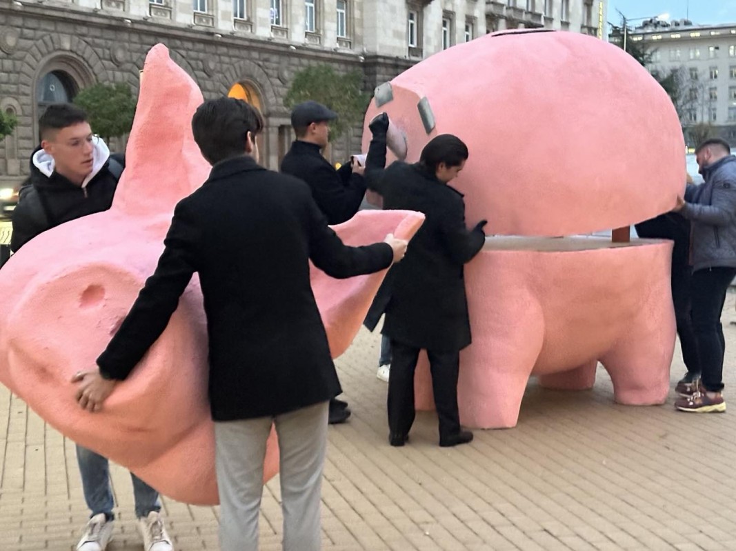 "Арт инсталация "Прасe-касичка" Бюджет 2026. Нещо се случва на Ларгото в София!", написаха те.
