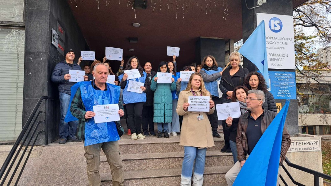 Заплатите в пловдивската структура на НСИ са изключително ниски, казаха протестиращите, които поискаха по-високи възнаграждения, съответстващи на нарасналия обем от работа и инфлацията в страната.