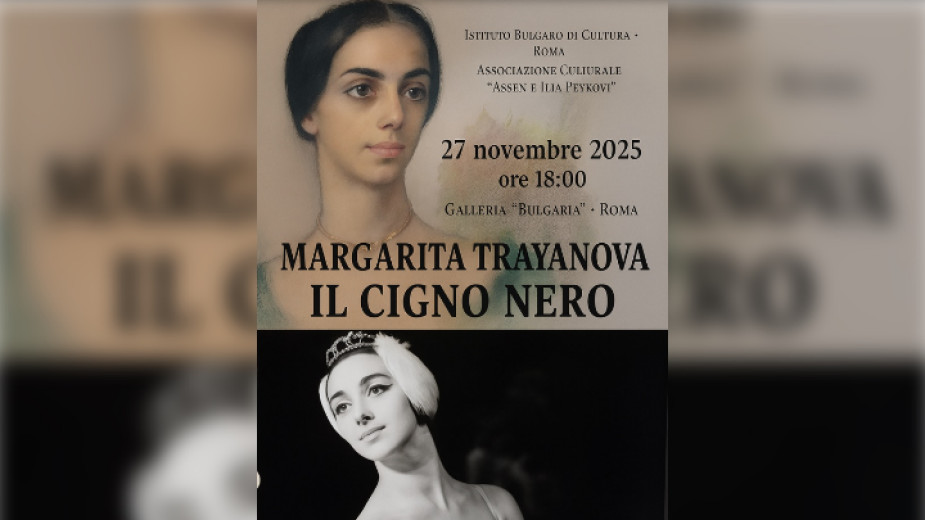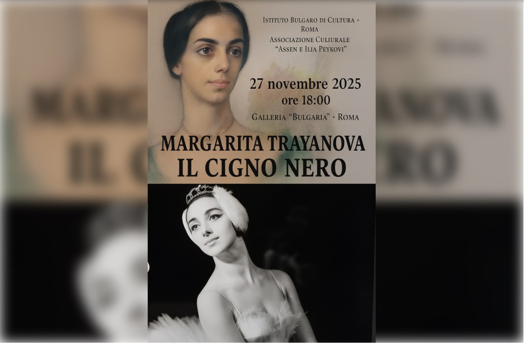 Културна вечер, посветена на балерината Маргарита Траянова, наричана "Черния лебед", ще се състои на 27 ноември от 18,00 ч. местно време в Галерия "България" на Българския културен институт в Рим (via Monte Brianzo №60).