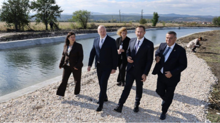Премьер Росен Желязков, министр сельского хозяйства Георги Тахов и европейский комиссар по аграрным вопросам Кристоф Хансен открыли обновленный магистральный накопительный канал “Тракиец” у с. Конуш, на юге Болгарии. Ремонт увеличил площадь..