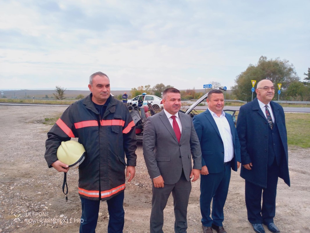 Съвместно учение на Единната спасителна система се проведе на границата между областите Разград и Търговище в района на кръговото кръстовище в близост до село Трапище. Симулирана бе ситуация, при която пикап, превозващ един тон лесно запалима течност, катастрофира с училищен автобус и лек автомобил при усложнени метеорологични условия. Сценарият включваше множество пострадали – както деца, така и възрастни, риск от пожар, замърсяване на околната среда, необходимост от евакуация и спешна медицинска помощ.