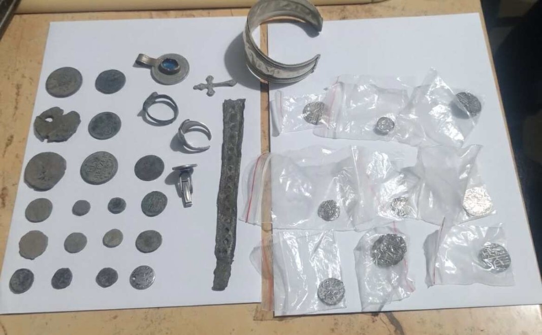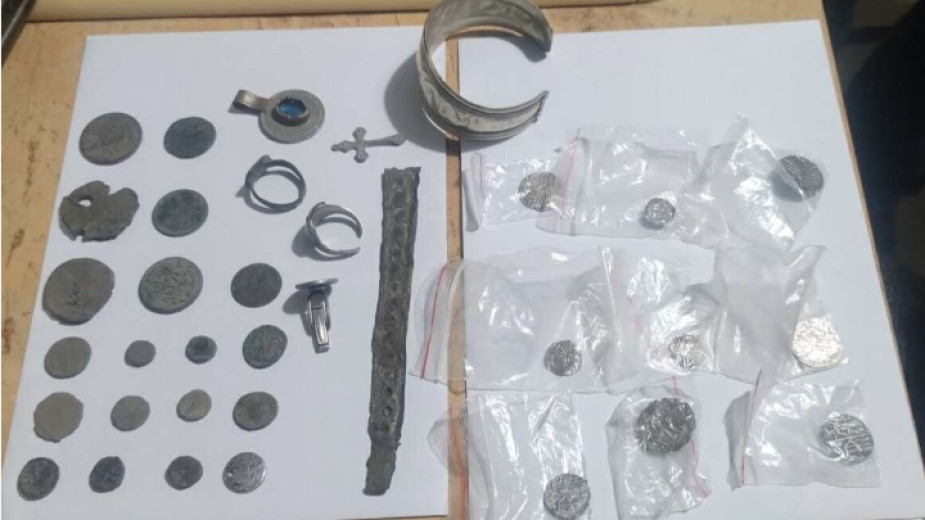 В дома му на ул. "Цар Освободител“ в града са намерени 40 монети с вид на антични, накити – пръстени, гривна, кръст и медальон с вид на културно-исторически ценности. Иззети са.